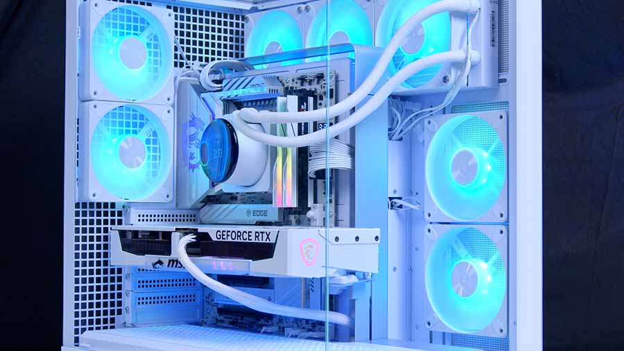 We used APNX fans with this build and encountered cable length issues during installation, suggesting the case may be poorly designed to accommodate its own fans. We found that the cable length on the APNX fans wasn’t optimal for efficient and tidy cable management. In this case, the fans have been out longer than the APNX V2, and there is a potential that APNX may release fans that are better suited for this case in the future. We want to clarify that this isn’t a significant issue, just a slight disappointment in visuals and overall management. From a practical standpoint, they work fine together.