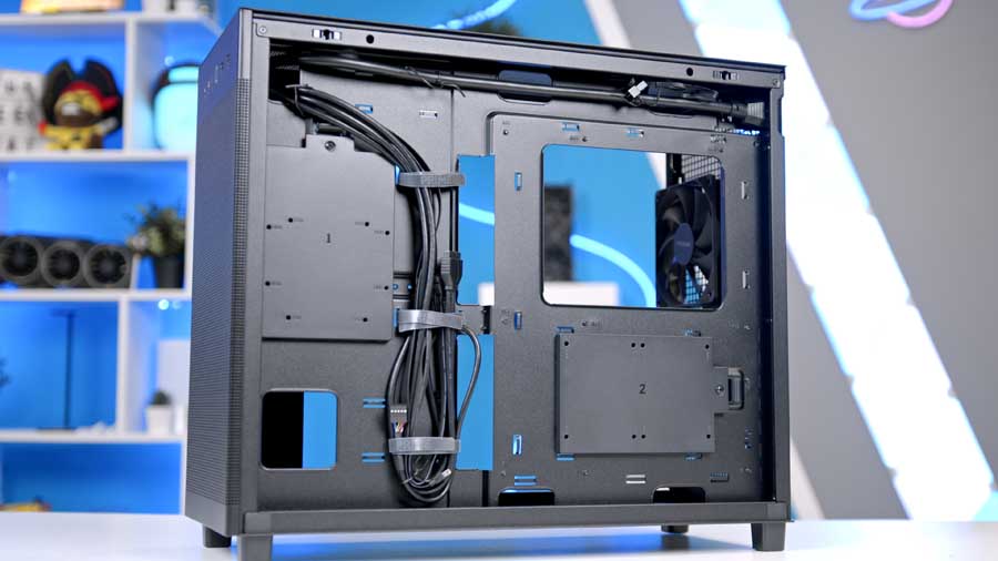 The overall clearance offered is slightly narrower than that of mid-tower chassis, leaving about 165 mm for your cooler's height, 180 mm for your PSU's length, and a maximum of 360 mm for your GPU's length. The case does support vertical GPU mounting as the PCI-E Slots can be rotated vertically, and there's an included GPU bracket. However, the riser cable for vertical GPU mounting is not included; if you want to mount it vertically, you'll need to purchase this accessory separately. On the other hand, cable management will be a breeze thanks to the 34mm wide space left behind the motherboard tray.