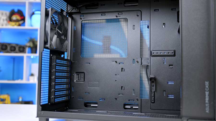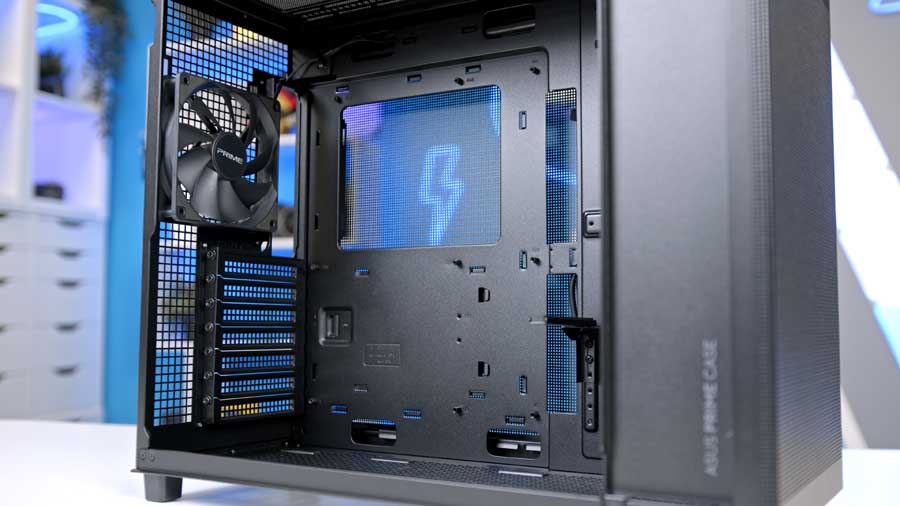 ASUS assumes you'll configure the bottom fans as intake, so the bottom panel includes a dust filter to protect your components. However, this case has a single exhaust fan at the rear, so to make the most of its features, you will need to source additional fans. We would recommend at least 4 fans in this case if you choose an air cooler for CPU cooling. If you opt for a radiator, your cooling potential will be even better.