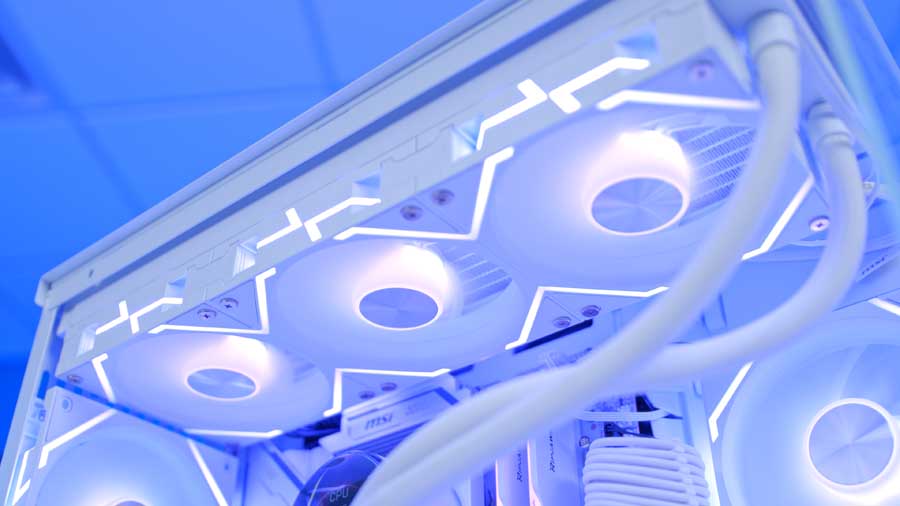 Airflow is a factor that has received some attention from Lian LI. This case comes with five pre-installed fans altogether, which is a great choice if you choose not to add in other fans. If you want a more cost-effective model where you can add the same MSI MPG EZ120R ARGB fans that we've used, you might benefit from choosing the 'non-Flow' version of this case, the O11D Mini V2 White.