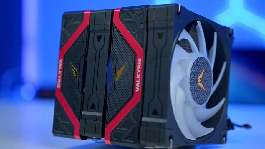 Cooling power comes from a pair of Valkyrie U12 A‑RGB fans, which can be daisy‑chained via PWM for easy cable management. The lighting should sync seamlessly with your motherboard’s software, and the fans can ramp up to 2150 RPM when needed, delivering both performance and lighting customisation.