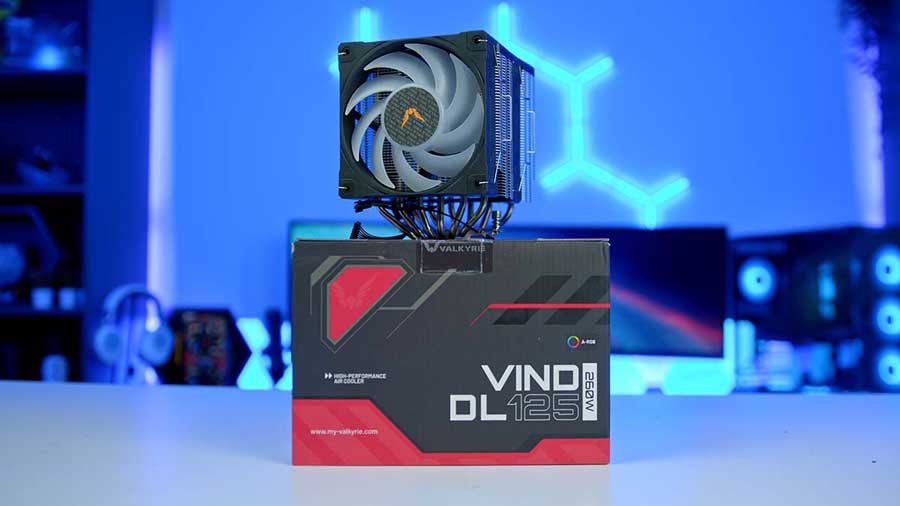 If you want a high‑performance air cooler with a touch of design flair, the Valkyrie Vind DL125 is the standout choice. It’s the only cooler in our roundup to feature RGB lighting, and its dual‑tower design makes it as functional as it is eye‑catching. The DL125 uses six composite heatpipes to pull heat directly from the CPU into two dense 100‑fin stacks, ensuring stable temperatures even under heavy multitasking or marathon gaming sessions. Despite its dual‑tower build, the cooler stands at just 158mm, making it one of the more compact options here, which is ideal if you’re mindful of case clearances.