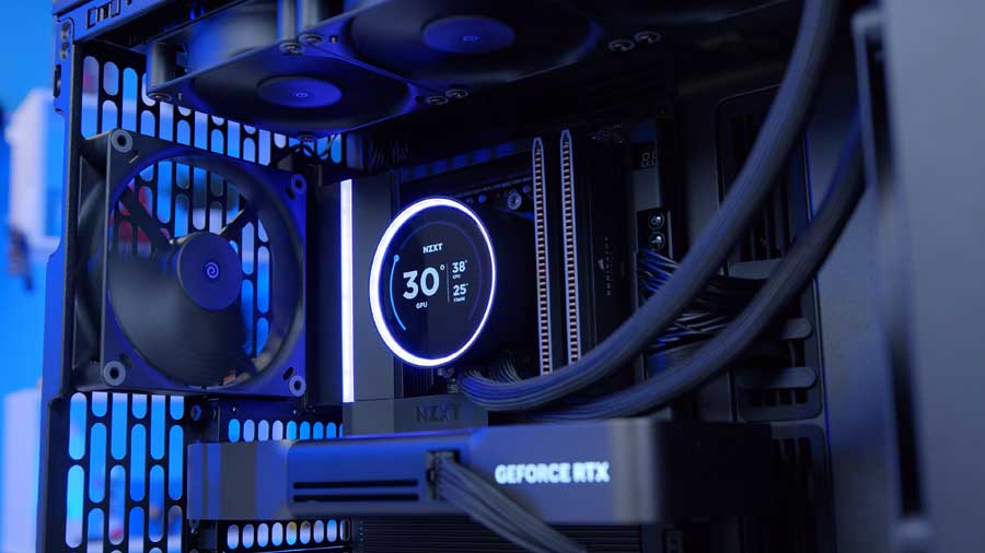 This 360mm cooler is an all-in-one unit powered by a custom-designed NZXT Turbine pump, delivering a high flow rate and head pressure for powerful yet quiet CPU cooling. It’s ideal for maintaining the AMD Ryzen 9 9950X3D CPU’s stability under load. What’s more, you’ll benefit from handy personalisation features, such as displaying your favourite GIF or image, tracking real-time system performance, and integrating with Spotify and YouTube using the IPS LCD screen.
