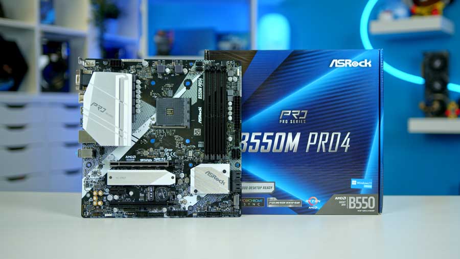 The B550M Pro4 is a sensible match for our Ryzen 5 5500 because the board’s AM4 socket and chipset explicitly support Ryzen 3000/4000/5000 series processors. When this board was initially released, it introduced modern connectivity features: its GPU slot used PCIe 4.0, and the M.2 slots could support Gen4 M.2s. Even by today’s standards, these are still faster bandwidths. The board also provides plenty of USB ports for all your peripherals.