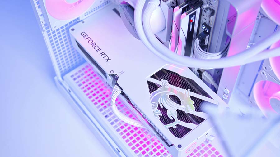 We’ve chosen the RTX 5070 Ti because it offers outstanding performance, and its stunning design aligns with our other MSI components. It’s ideal to stick to a brand theme for both lighting purposes and visual harmony. The RTX 5070 Ti itself uses the latest NVIDIA Blackwell architecture, featuring fifth-generation Tensor Cores that maximise AI performance with DLSS 4. DLSS 4 is a technology that utilises artificial intelligence to enhance frame rates, minimise latency, and improve image quality through multiframe generation; it generates intermediate frames using AI to offload the bulk of rendering and graphics calculations in the background. This architecture is the ultimate platform for gamers and creators alike. With 16GB of VRAM, this graphics card will provide faster texture loading and processing times, while also contributing to overall low latency. This amount of VRAM is becoming increasingly necessary for gaming, especially as modern titles demand higher texture resolutions, larger open worlds, and more complex asset streaming.