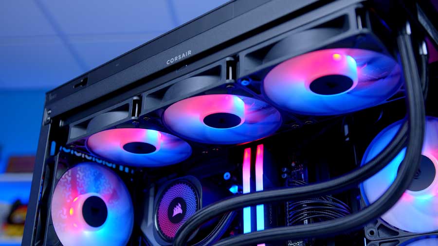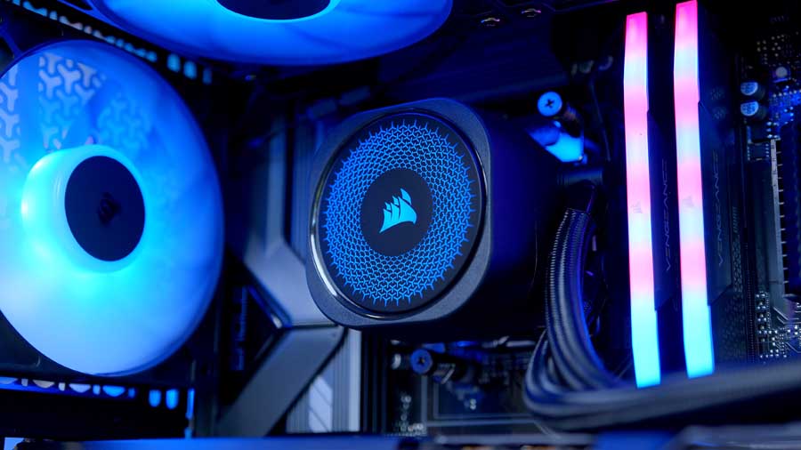 The three included fans use a standard 5V ARGB header for lighting customisation, as does the lighting on the water block. While this means you do lose access to Corsair's iCUE control software for lighting customisation, it does help trim cost on the cooler and allows for direct control through the ARGB headers on the motherboard selected for this build. Some people will prefer this approach, while others might miss the use of iCUE. If you fall into the latter of those two categories, Corsair does offer a similar cooler called the iCUE Link Titan which may be worth considering.