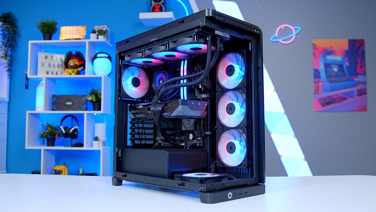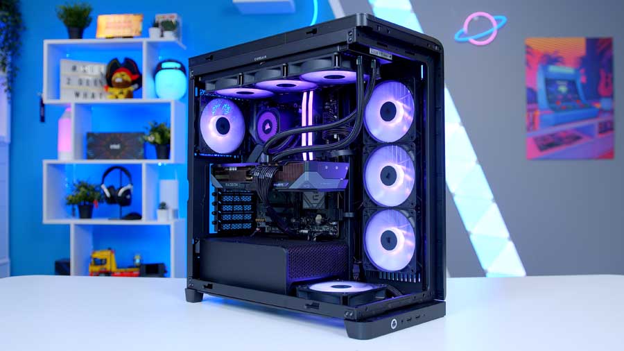 The case choice in any gaming PC build is a highly subjective one, and what might look amazing to one person might equally look a bit naff to another. In our personal view, the Corsair FRAME 4500X is a great-looking case that also ticks the key boxes when it comes to airflow, thermal performance and part compatibility. With support for GPUs up to 460mm in length, room for a 360mm radiator up top, and three included reverse-blade intake fans, it has all the features you could need or expect at this price point.