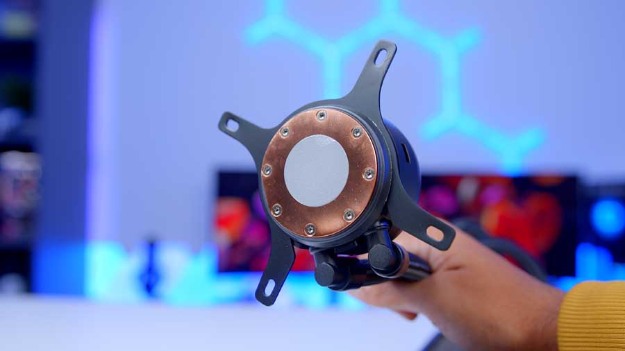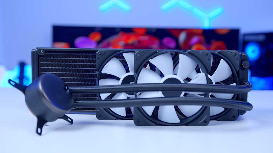 The six ARGB LEDs are controllable via motherboard software such as Aura Sync and Razer Chroma. Alternatively, you can use a fan hub to synchronise the RGB lighting across the pump, fans, and case.
