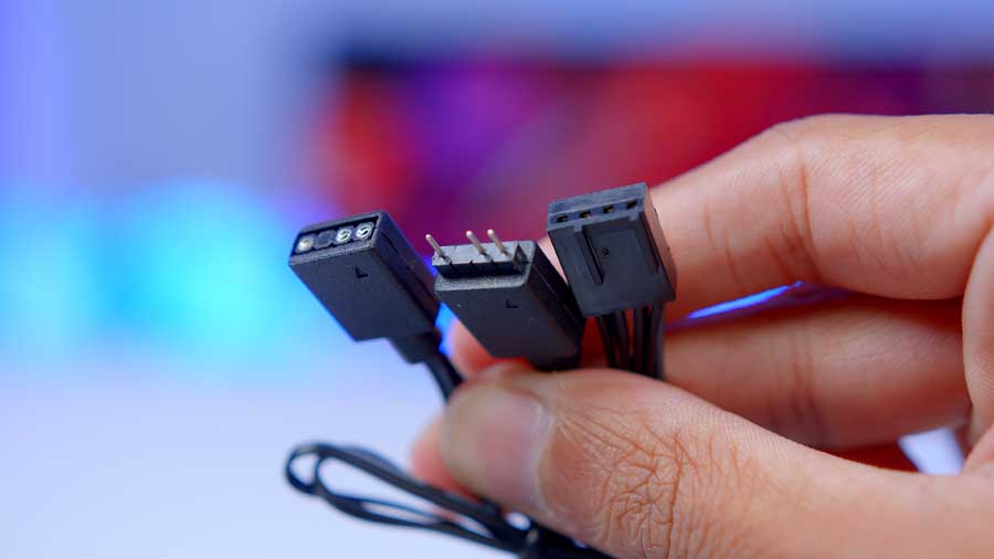 The pump connects to the motherboard via a 3-pin DC connector and runs at a constant speed, while the fans connect via 4-pin PWM connectors for variable speed control. This cooler has three Aspect 12 RGB PWM fans, which can reach a maximum speed of up to 2000 RPM. They feature rifle bearings, known for reducing friction and noise while extending the lifespan of the fans.
