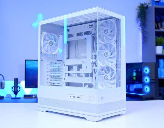 The case housing all of the components in this PC build is the MAG PANO 100L PZ from MSI. The MAG PANO 100L is another fish tank-style chassis but offers twists and turns to make it stand out compared to the vast selection of seamless tempered glass cases on the market. This case has a slightly angular design with two glass panels that can be easily removed to access the internals easily.