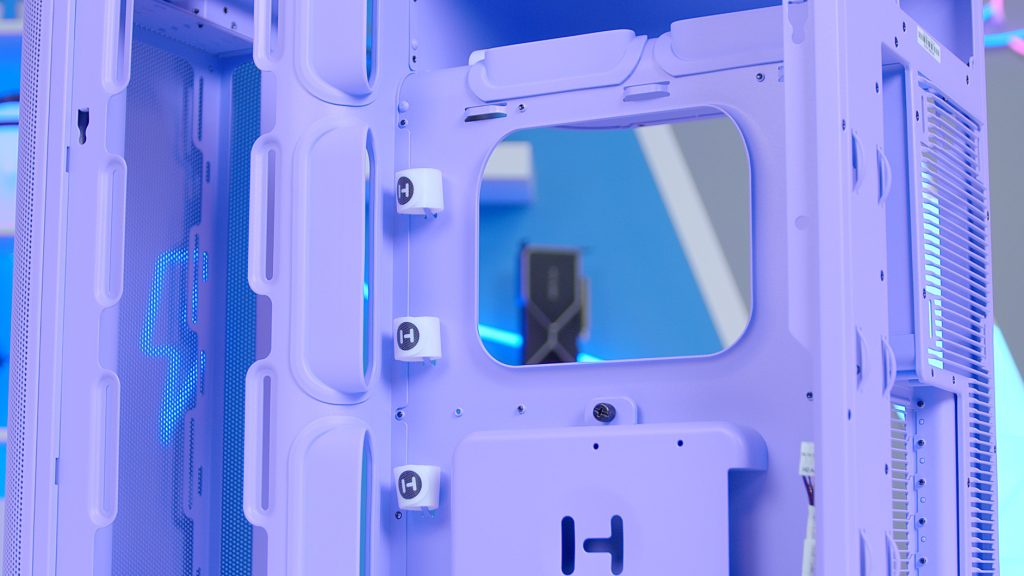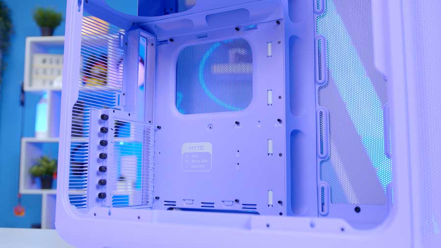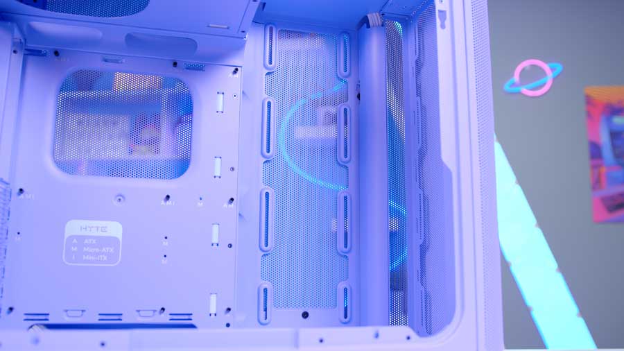 Next to the straps, you’ll find HYTE’s patent-pending Louvred Blade Ventilation design, which reduces exhaust impedance without compromising your case’s robustness.