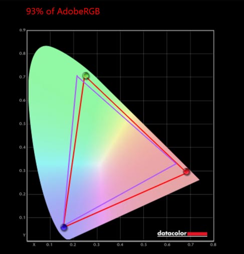 It is fair that the 93% Adobe RGB result isn’t the highest percentage, as this monitor isn’t specifically designed for creative use. However, we want to highlight that this percentage doesn’t match the 98% Adobe RGB that MSI advertises it should be capable of.
