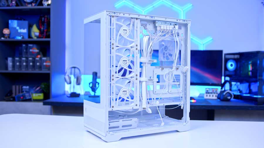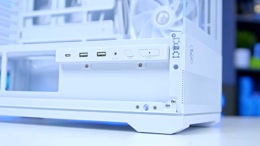 Each of these panels is perforated to maximise fresh air intake, ensuring that cooling performance isn’t sacrificed for aesthetics. On the metal front panel, a minimalistic MSI dragon logo adds a subtle premium touch and branding.