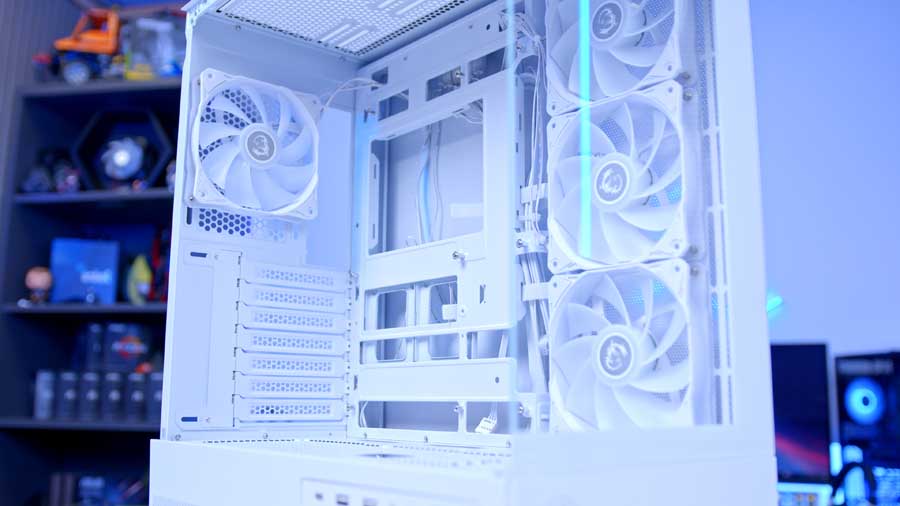 There are areas where the chassis feels less forward‑thinking, such as the limited space for larger power supplies and the lack of additional fan hub headers to expand ARGB components. Yet these shortcomings are offset by thoughtful touches like removable panels, reverse‑blade fans for unobstructed lighting, and integrated cable‑management aids.