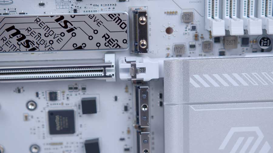 One of the impressive features we saw with previous-generation reverse connector motherboards was the ability to use cable-free graphics cards. ASUS was the only manufacturer to offer cable-free graphics cards, but I had hoped to see something similar from MSI and Gigabyte. Unfortunately, this doesn’t seem to be the case, and PROJECT ZERO builds won’t truly be cable-free.