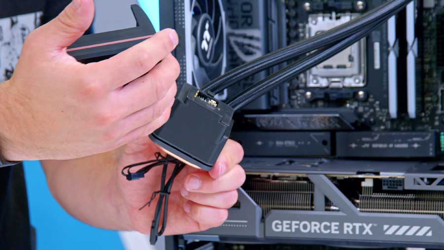 Now onto the fans. The SWAFAN EX ARGB Sync Fans feature the Quick Connect Design, which allows them to be daisy-chained via integrated magnets. They also come pre-installed on the radiator, saving you time and streamlining the installation process. The fans require only one cable when daisy-chained, resulting in a cleaner, hassle-free cable management process.