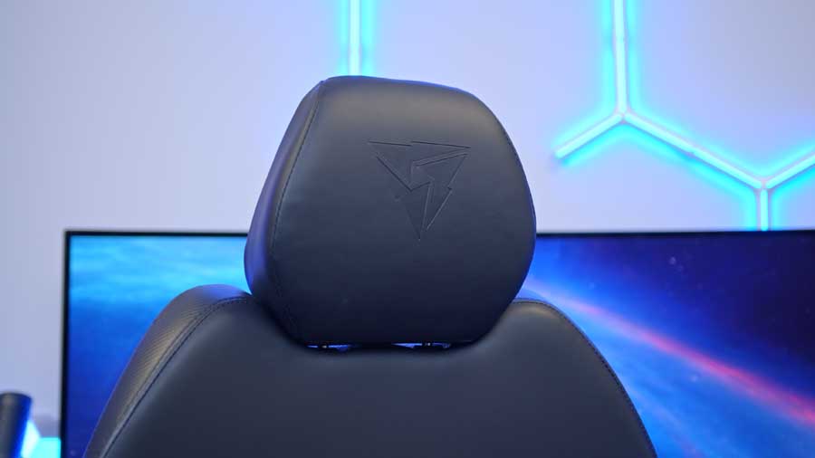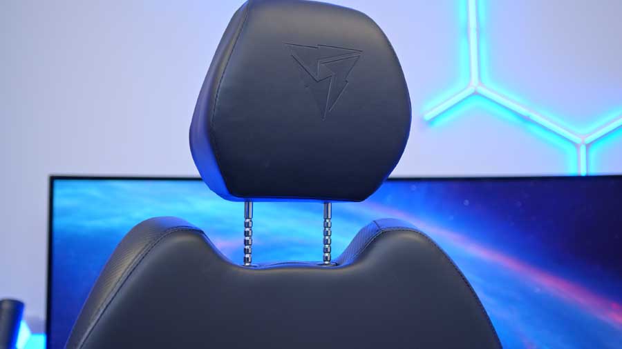 Underneath, a reinforced steel frame provides structural stability, ensuring the chair can withstand daily use without flexing or weakening. The backrest is padded with moulded foam that retains its shape far better than cut foam, offering consistent support even after extended wear. Its ergonomically curved design encourages a natural posture, particularly in the lumbar region, reducing strain on the spine. The headrest features the ThunderX3 logo debossed into the leatherette.